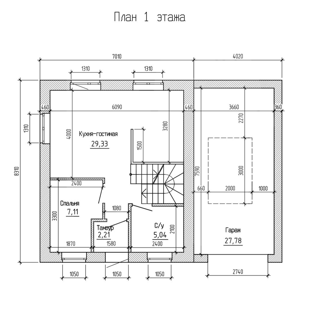 • Габариты 7.01 м x 8.31 м