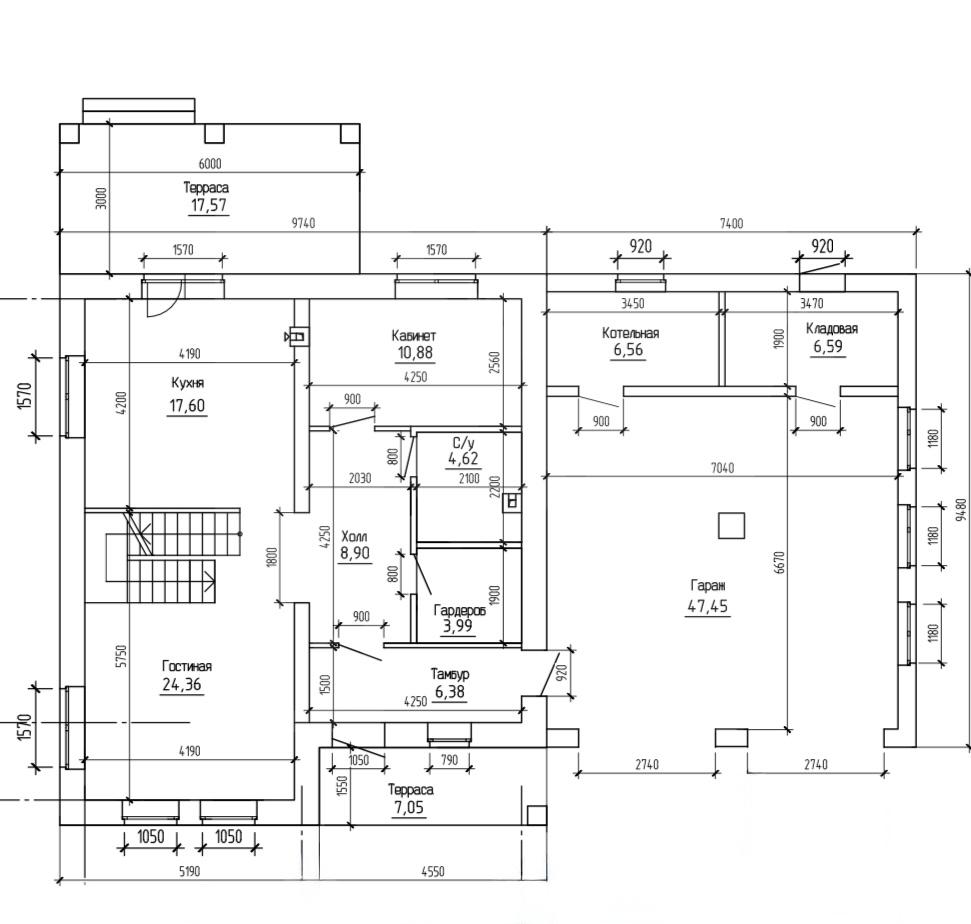Перекрытия (полы первого этажа – монолитные ж/б, межэтажное – ж/б плиты, чердачное – дерево)