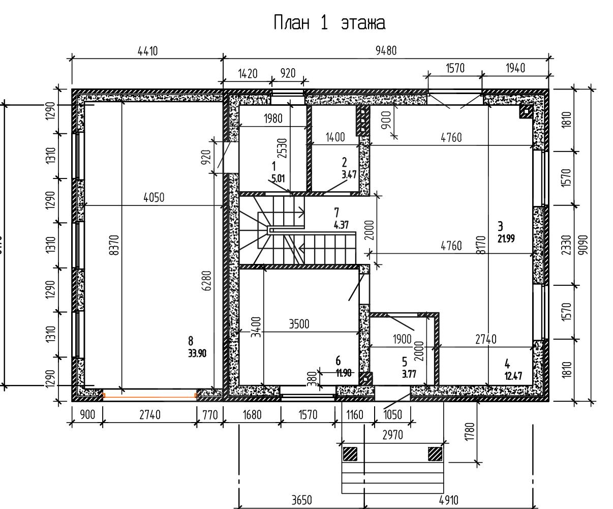 Перекрытия (полы первого этажа – монолитные ж/б, межэтажное – ж/б плиты, чердачное – дерево)