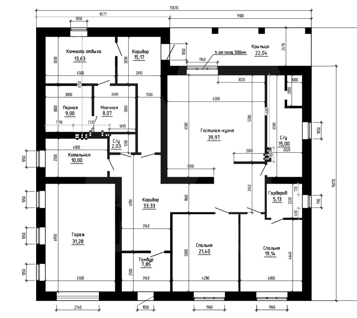 • Габариты 17.67 м x 17.54 м